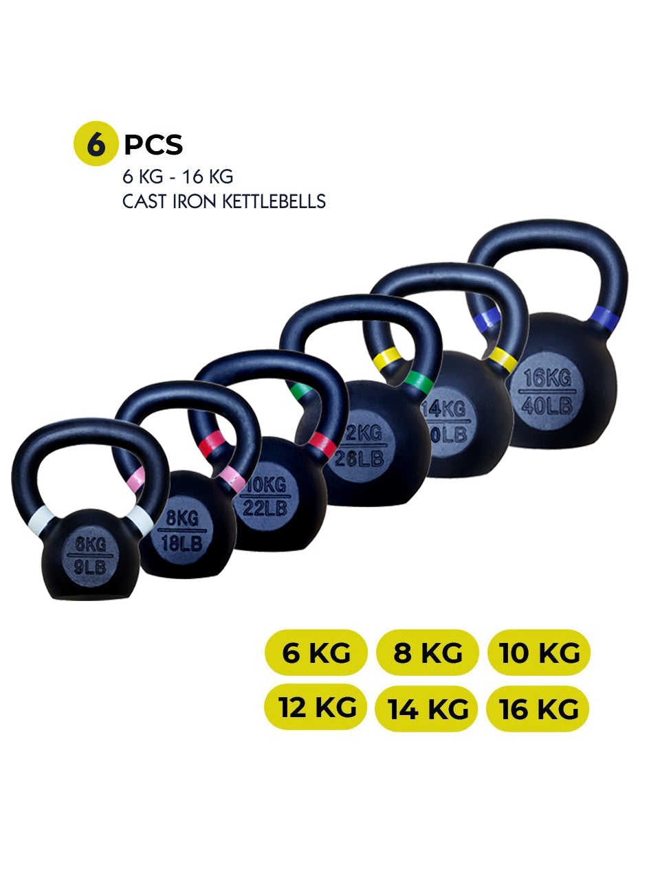 1441 Fitness Powder Coated Kettlebell Set - 6 Kg to 16 Kg