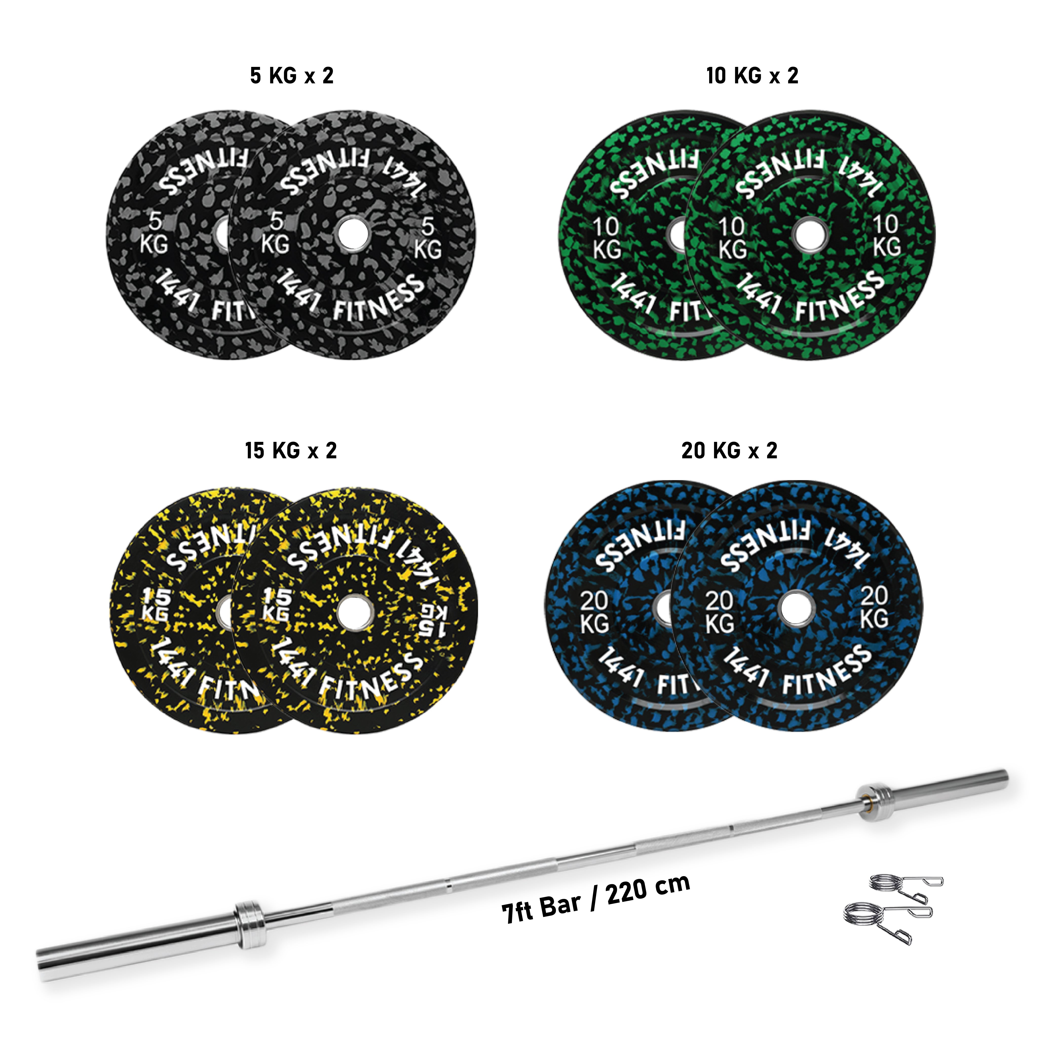 1441 Fitness7 Ft Olympic Barbell with Dual Grip Olympic Plates Set | 80 kg