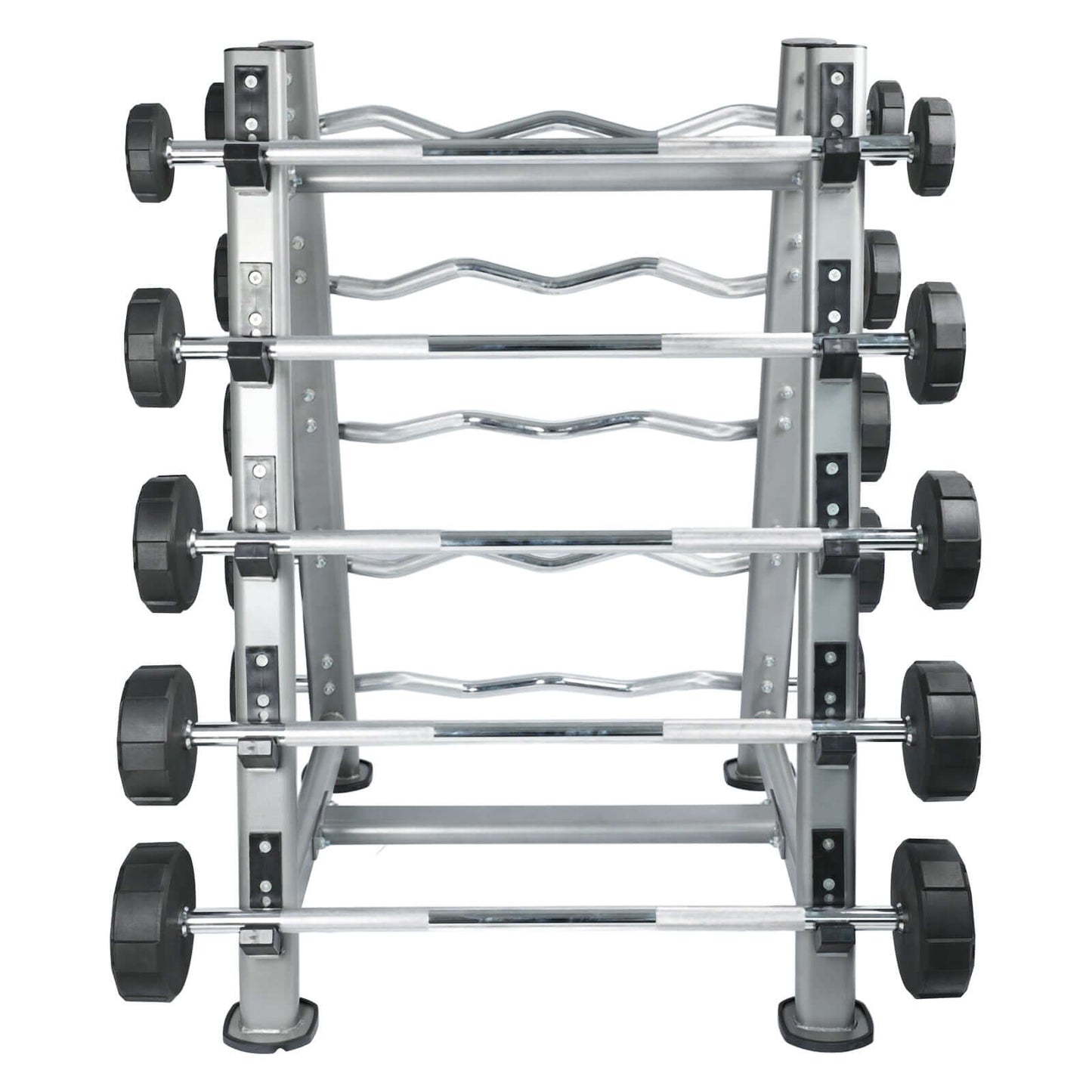 - WHAT’S IN THE PACKAGE – Each Fixed Barbell is made from steel, coated in chrome, with protective rubber caps on each end With heavy Duty Rack