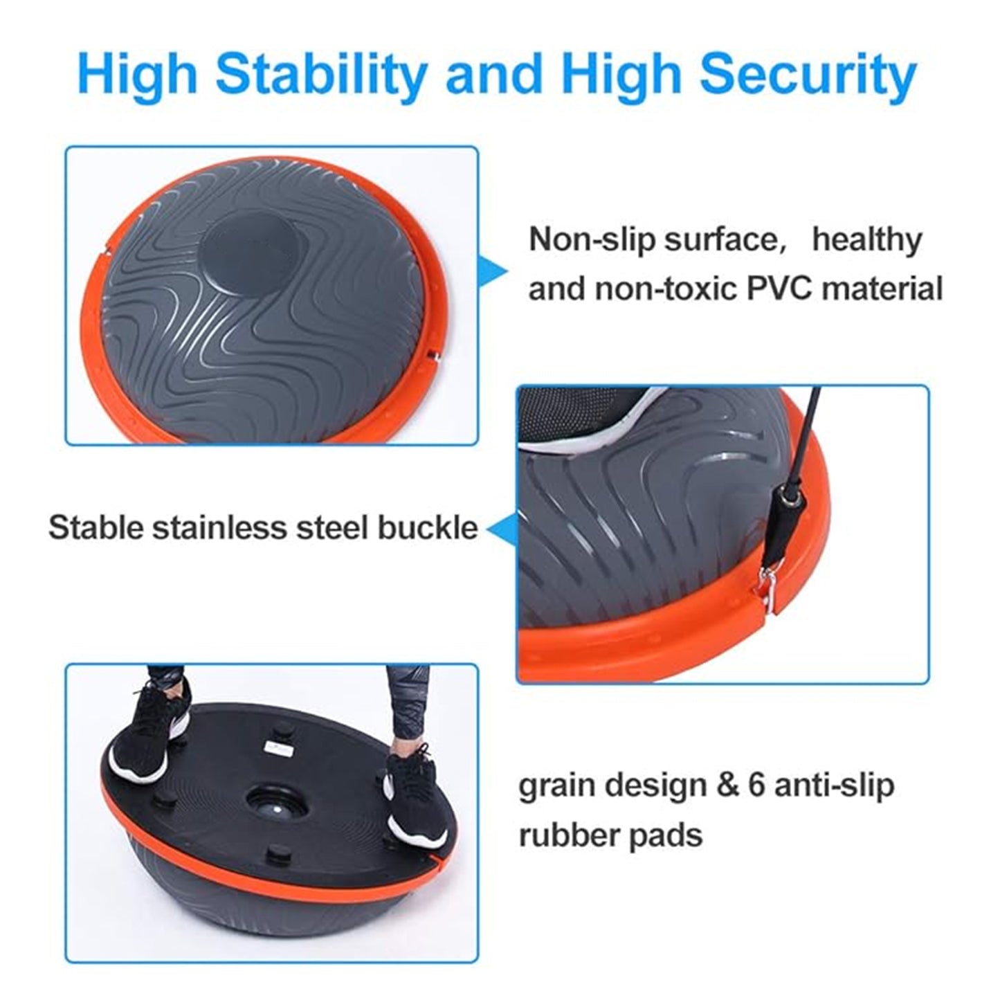 - Enhanced Safety: Equipped with six reinforced rubber corners, the Half Balance Ball provides enhanced slip resistance and stability. The addition of a non-slip pad further stabilizes the ball, allowing you to apply force without worrying about losing balance.