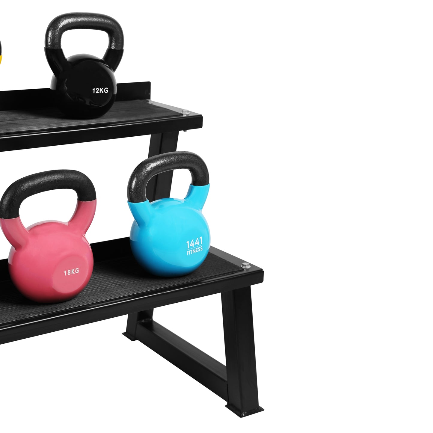 1441 Fitness Vinyl Coated Coated Coated Kettlebell Set with Rack - 4 Kg to 20 Kg